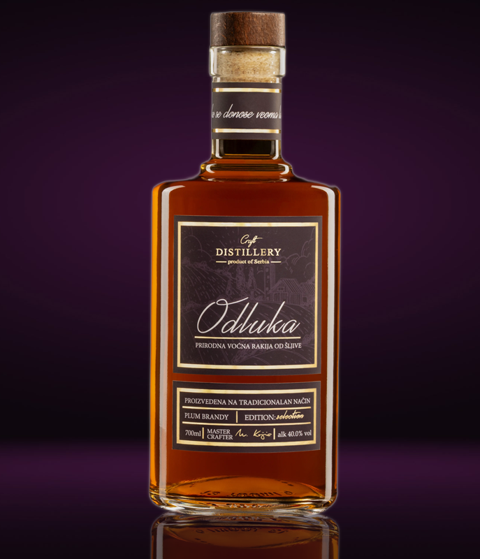 Kupaža tri sorte šljive (Crvena ranka, Čačanska lepotica i Čačanska rodna) za iskrene ljubitelje istančanog ukusa i mirisa. Eksplozija prirodnih aroma uzetih iz samog ,,srca'' rakije dvostrukom destilacijom u ručno pravljenom bakarnom kazanu. Ćilibarna boja dobijena odležavanjem u srpskom hrastovom buretu čini je prosto neodoljivom. Na nepcu se otvara slojevita paleta ukusa, od slatkoće šljiva do suptilnih tonova vanile, što je čini savršenim izborom za svaku priliku.